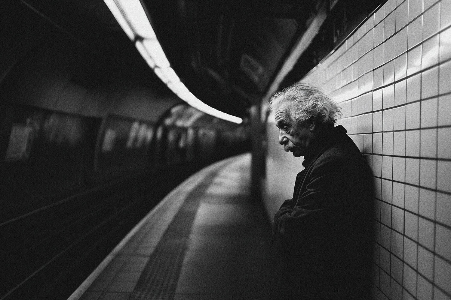 Evoking vintage silver gelatin photography, this collection places Einstein in a modern metropolis. These quiet, anonymous moments, like riding a bike or sitting in a park, humanise a genius within the everyday.